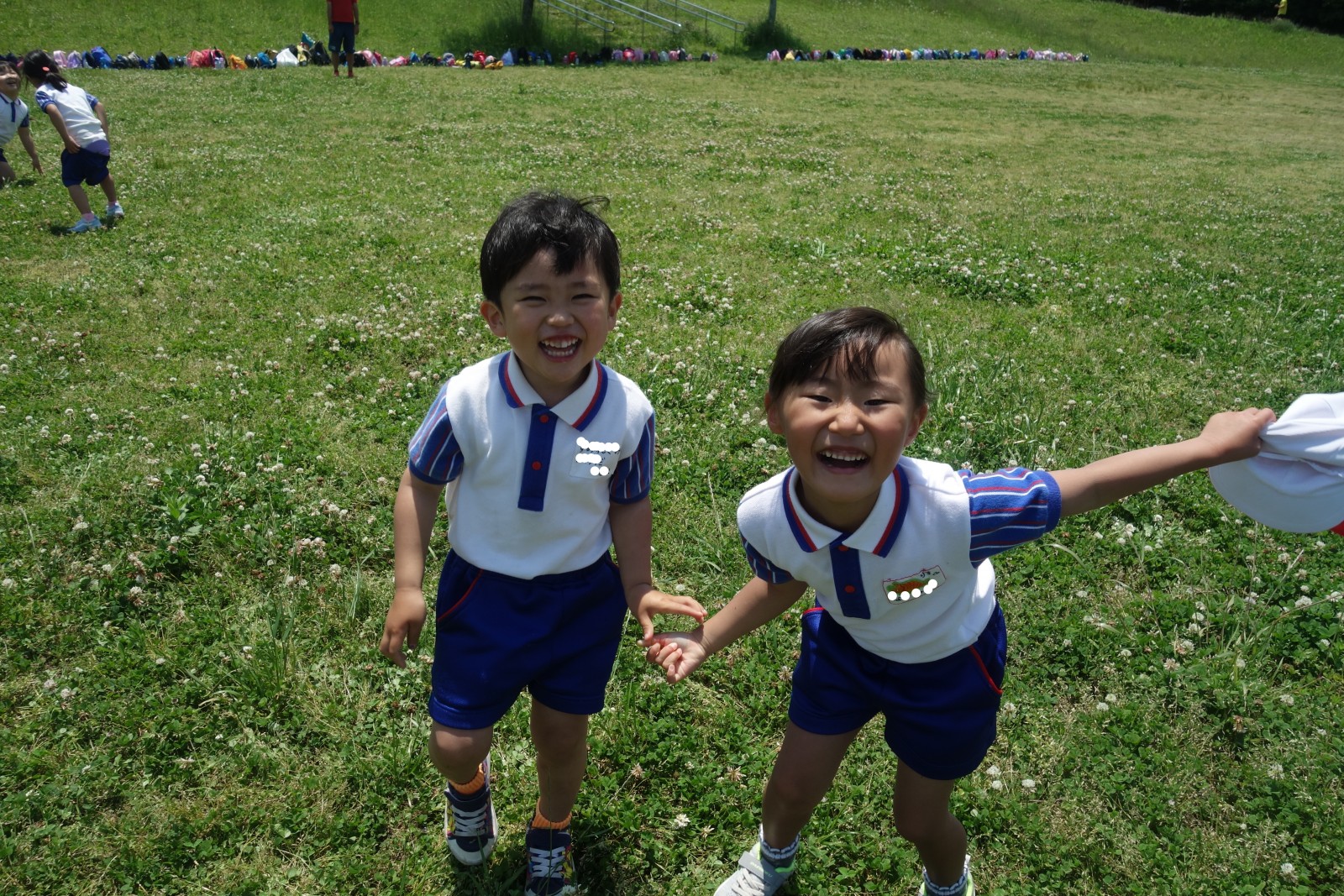 年長組と年中組の仲良しペアで志井公園まで歩いて
